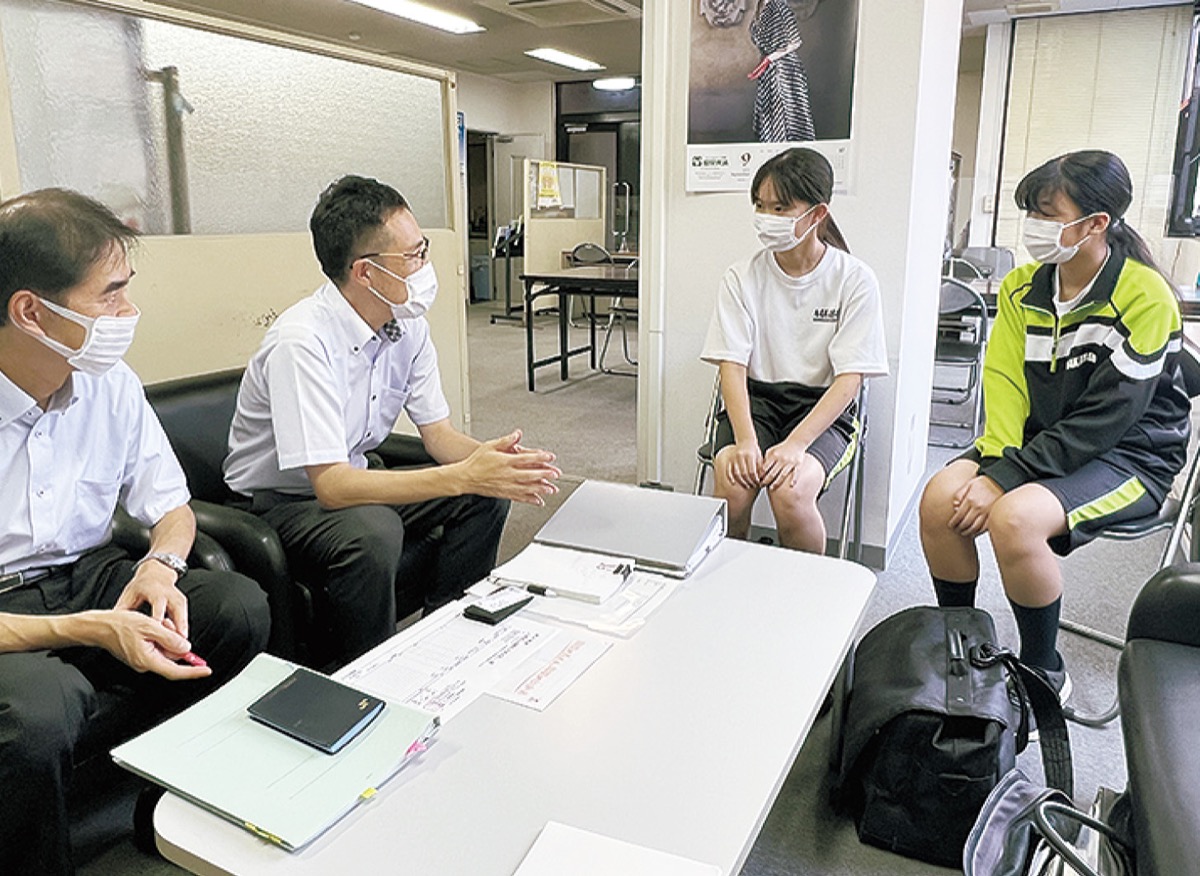 地域新聞としての本紙の役割や業務内容について説明を受けた2人は記者に同行し、秋の交通安全運動の「中原区高齢者大会」を取材。中原警察署員による詐欺防止の講話に熱心に耳を傾け要点をメモした。また、川崎市商工会議所中原支所との打合せにも参加し、職員に仕事のやりがいや難しさなどを質問し、社会への理解を深めていた。