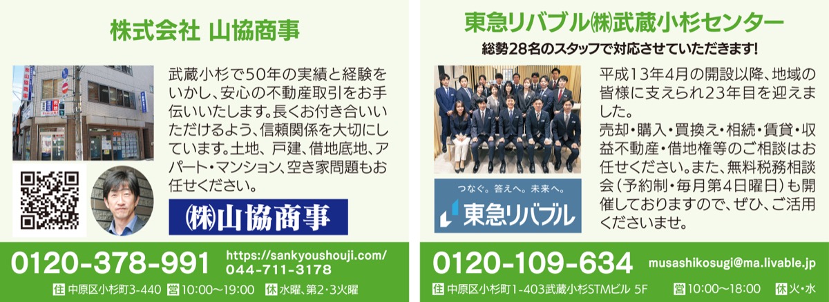 将来に備え、自宅の価値や評価は家族と共有しておきたいもの。本紙では秋の特別企画として、不動産大手の2社(東急リバブル、山協商事)と協力し不動産を無料査定。本紙が取り次ぎ2社一括で依頼することで、自宅の資産価値を比較でき、各社の視点を踏まえ今後の住まいや不動産全般の相談も可。まずは当編集室へお問合せを(左記)。