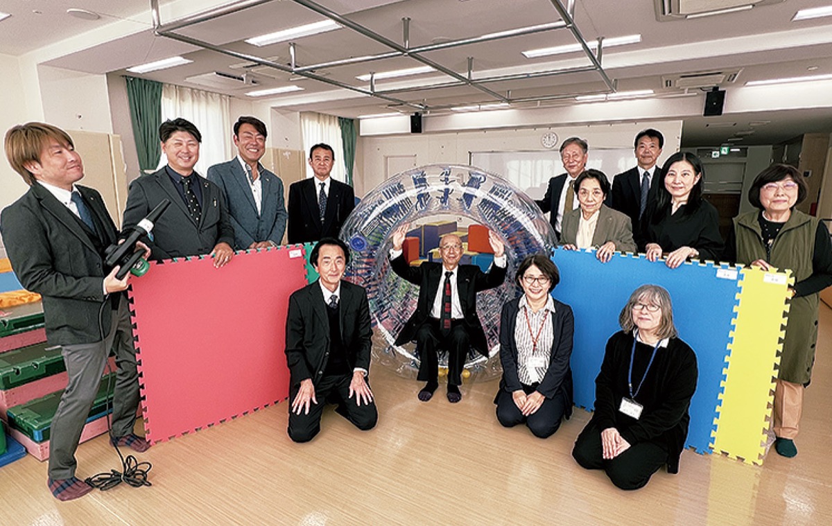 障害などで支援が必要な18歳までの子が生活する同センター。施設内の運動ホールにあった類似の遊具が壊れたことを知ったRCが支援を申し出て、今回の寄贈に至った。360度回転し「でんぐり返し」などを体験できることで脳の活性化やバランス感覚が養えるという遊具。同センターの小林佳子所長は「言葉では分からない子でも感覚的な遊びの中から成長につながる。子どもたちが喜ぶ遊具をいただきありがたい」とあいさつ。内田会長は「遊具を機に健やかな人生を歩んでもらえたら」と話した。