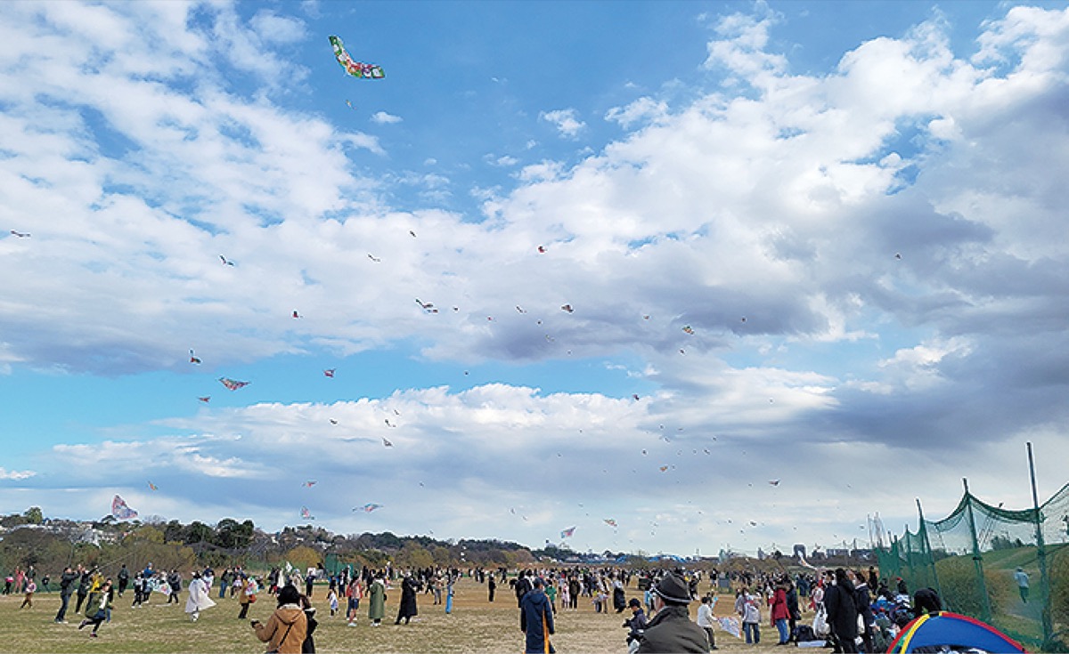 中原区子ども会連合会(小笠原茂春会長)主催の「新春凧揚げ大会」が1月7日、多摩川河川敷で行われた。川崎市公園緑地協会共催。