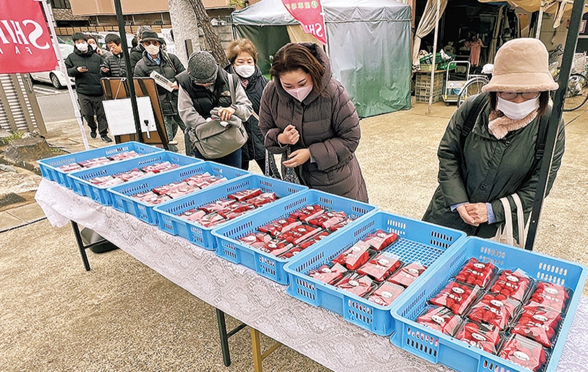 代々農業を営んできた新城の井上農園が作付け転換し、昨秋から育ててきた初の中原区産イチゴ。1月14日の販売初日、1パック900円で値付けされた計225パックがわずか3時間ほどで完売。翌週末の20日も、直売所にはオープン前から行列ができ、ケースに並べられた約200パックが飛ぶように売れた。中には4パックまとめて購入する地元住民や、先週に続き訪れたという家族連れの姿も。先頭で並んだ鮫島哲朗さんは「サイズも香りも良い。家族で食べるために」と2パックを購入。おつかいで訪れた新城小3年の小林千夏さんは「学校の授業で見学させてもらったイチゴ。こんなに大きくなるなんて」と驚き、笑みを浮かべた。