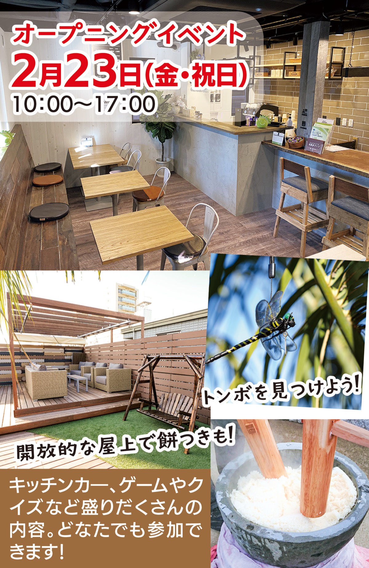 駐車場にはキッチンカーが登場し、開放的な屋上空間では餅つき体験を実施。参加賞がもらえる法律クイズ、キーワードを見つけるトンボ探しゲームなど、家族そろって楽しめる内容だ。