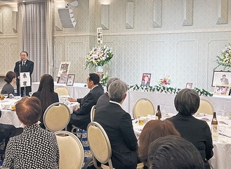 昨年10月14日に亡くなった中原区選出の神奈川県議会議員・川本学さんを偲ぶ会が2月15日、ホテル精養軒で行われた。所属した自民党議員、ロータリークラブ、中原消防団、保護司会などの関係者ら約130人が出席し、県政発展と地域活動に尽力した故人を偲んだ。