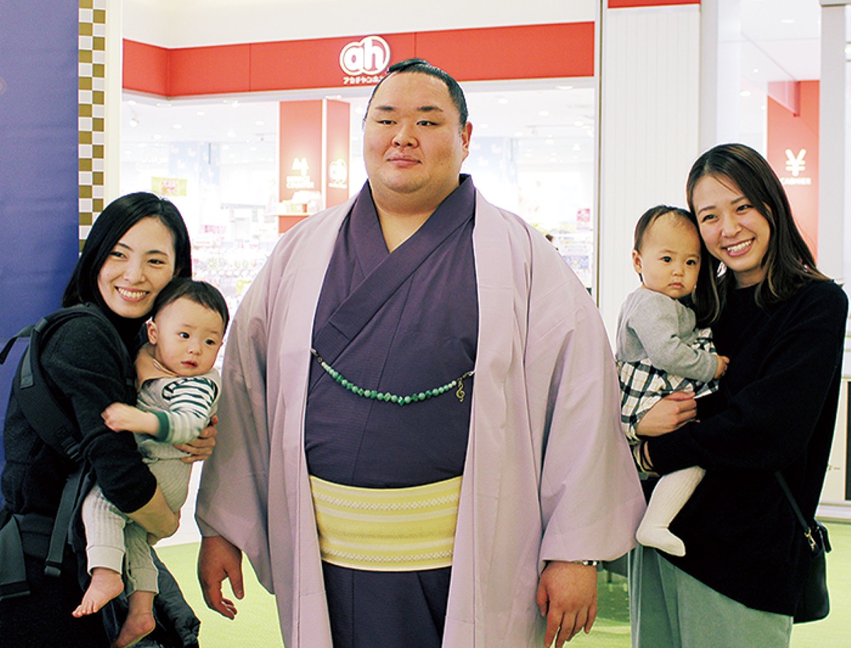 平日ながら会場には開始前から順番待ちの長い列。撮影が始まると、友風関は慣れた手つきで幼児を抱き上げた。泣き出す子にも「子どもは泣いた方がいい」と優しく声を掛け、「コロナでこうした機会がなかったので、多くの人に歓迎され故郷に帰ってきたと感じる」と笑顔を見せた。宮前区から3歳の娘と訪れた窪田志津香さん(38)は「川崎のスターに会えて嬉しい。三月場所ではけがに気を付け、川崎巡業で元気な姿を見せてほしい」と話した。