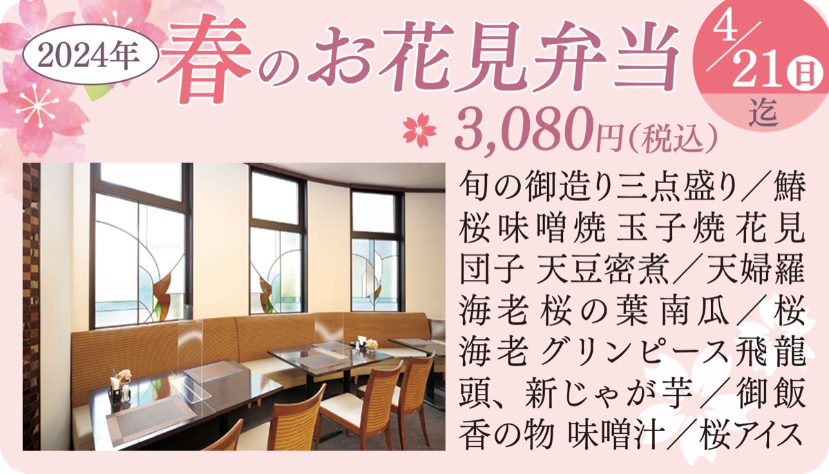二ヶ領用水の桜も咲き始める季節になりました。ホテル精養軒では、春のお祝い会食を承り中。和洋個室会場で楽しいひと時を過ごしてみては。「お花見弁当(税込3080円)」は4月21日(日)まで。ファミリーフェア(4月21日〜5月6日)もお楽しみに!