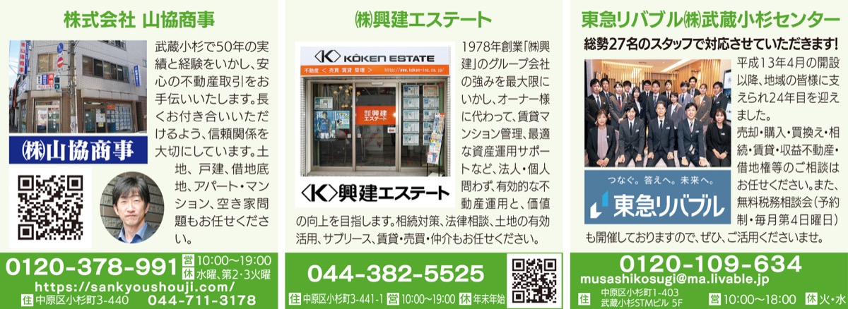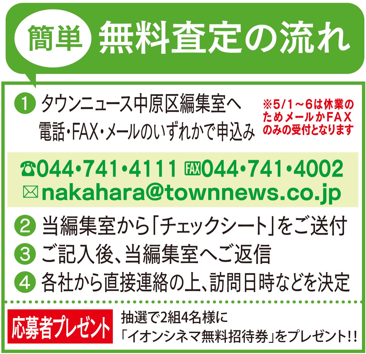 将来に備え、自宅の価値や評価は家族と共有しておきたいもの。本紙では春の特別企画として、不動産大手の3社(東急リバブル、(株)興建エステート、(株)山協商事)と協力し不動産を無料査定。本紙が取り次ぎ複数社一括で依頼することで、自宅の資産価値を比較でき、各社の視点を踏まえ今後の住まいや不動産全般の相談も可。まずは当編集室へお問合せを(左記)。