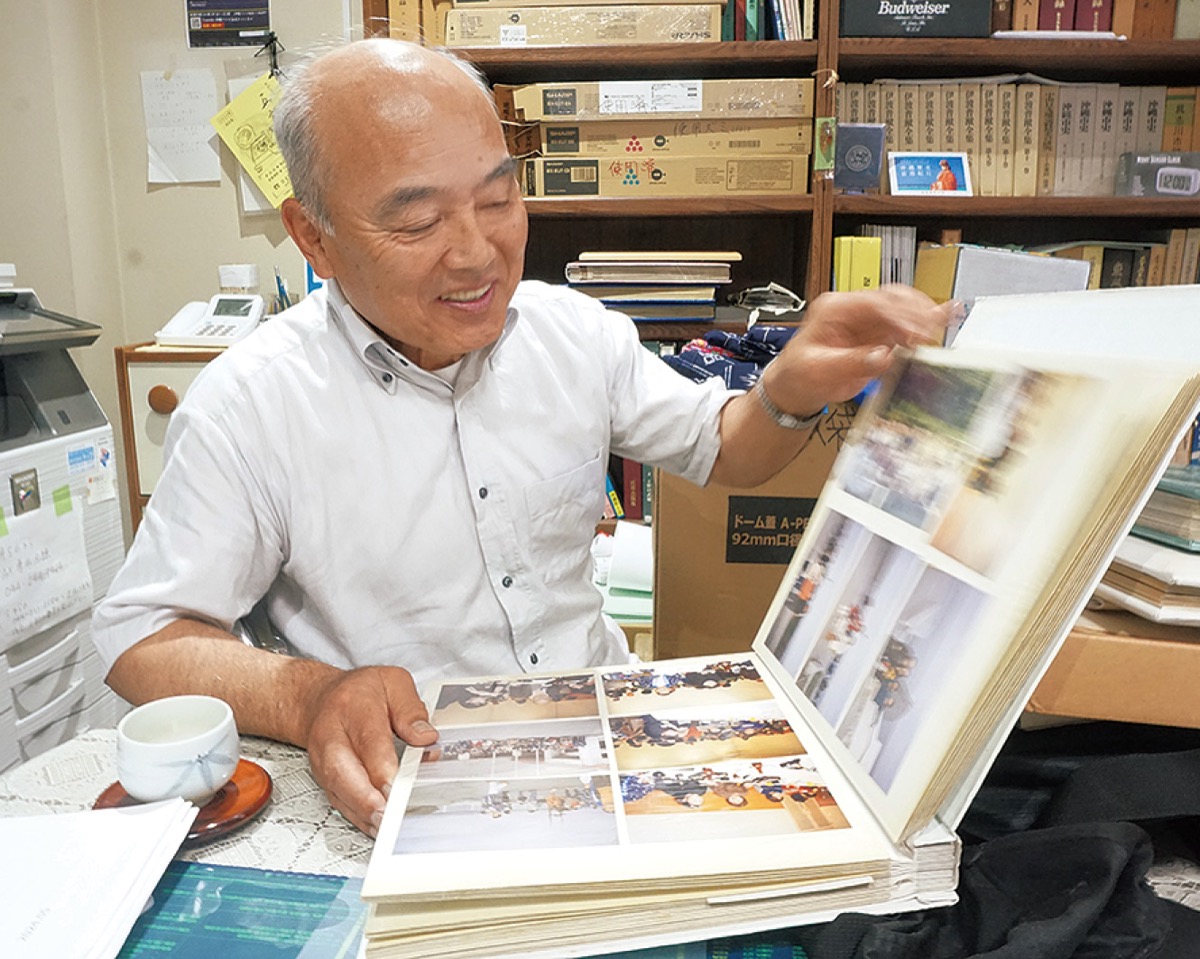 3階の事務所に歴史が詰まったアルバムが並ぶ。「昔はね、県人会で家族連れでバスで旅行にも行ったね」。会長の金城宏淳(こうじゅん)さん(74)は、40人ほどが並ぶ旅先の写真に目を細めた。