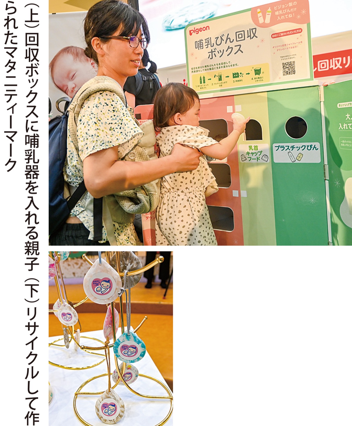 ベビー用品メーカーのピジョン(株)(東京都中央区)、ベビー用品販売店の(株)赤ちゃん本舗(大阪市中央区)は6月28日、グランツリー武蔵小杉で哺乳びん回収リサイクルの啓発イベントを実施した。両社は連携して、2022年8月から同プロジェクトを全国で展開。今回、回収本数が約1万7千本に達したことを記念し、子育て世代が多い武蔵小杉で初めてイベントを開催。今後は川崎市と連携した取り組みを視野に入れる。