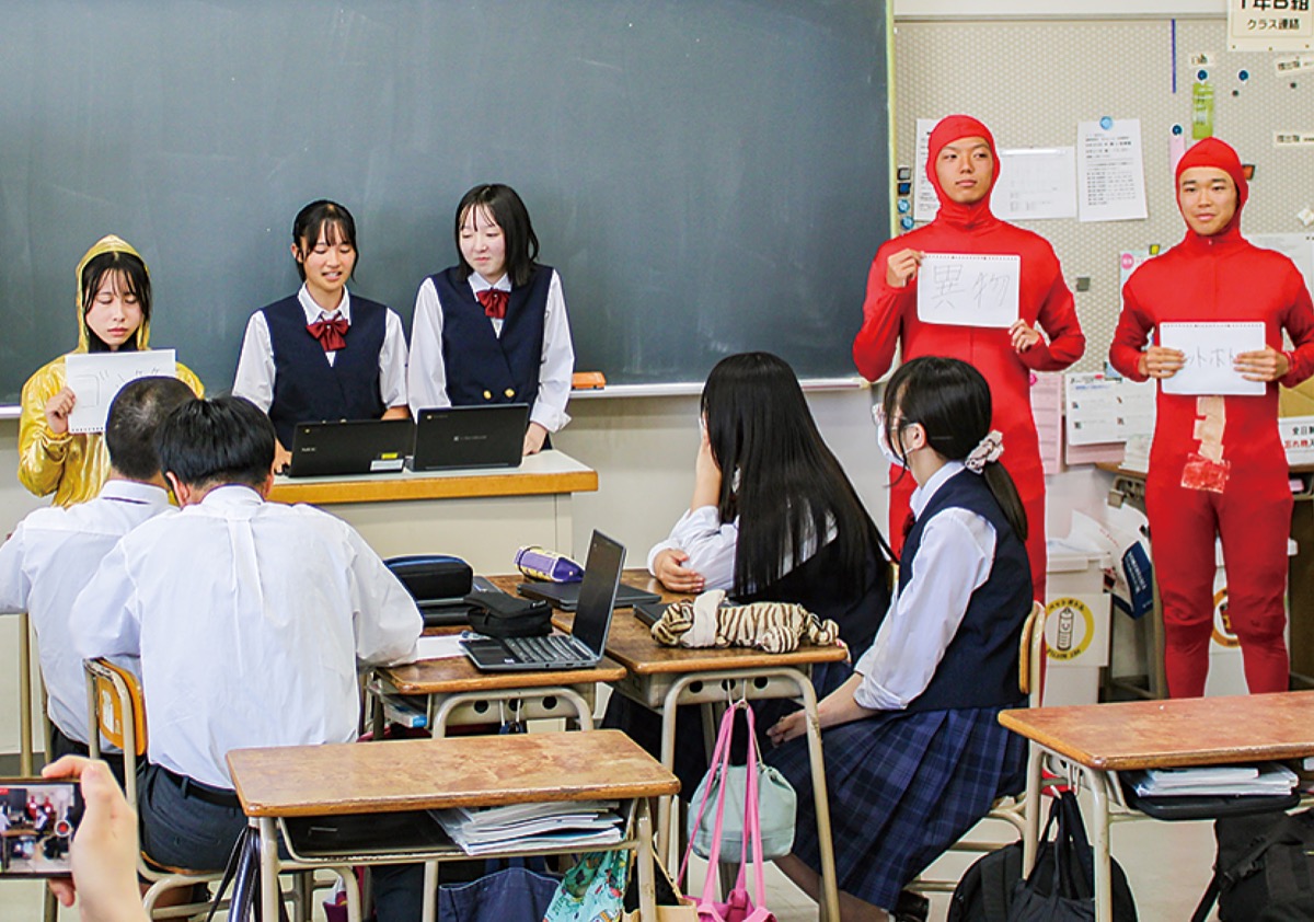 生徒は学年の枠組みを超えた混合クラスを作り、事業者ごとに課題を探究。宅配便などの物流業界のエネルギー消費による温室ガスの増加、自動販売機のリサイクルボックスの回収方法、コンビニの食品廃棄問題などについて各事業者に向けて発表した。川崎フロンターレをテーマに選んだクラスでは、気候変動の影響で2018年を境に試合の中止や延期される試合数が5倍も増えていることに着目。将来に向けてサッカーを続けられる社会にするために、CO2排出を削減する気候変動アクションを行う大切さを訴えた。