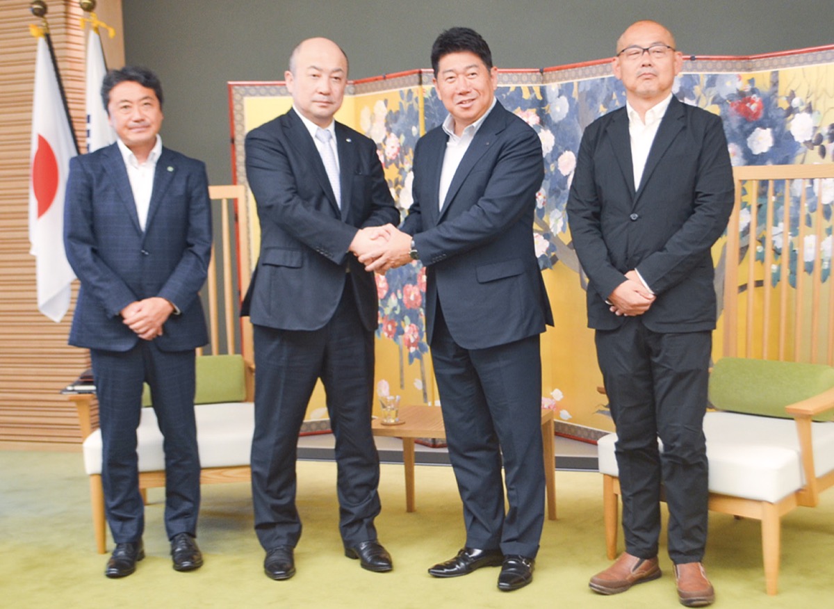 富士通陸上部の林恒雄部長、高橋健一監督、常盤真也企業スポーツ推進室室長は7月2日に福田紀彦市長を訪問。2026年4月に川崎市に拠点を移すことを報告した。