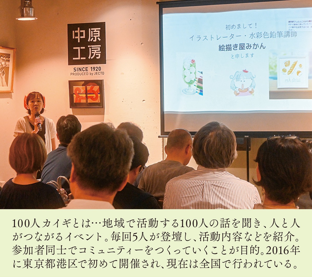 100人カイギは、地域で活動しているゲストを毎回5人招いて話を聞き、参加者同士でコミュニティーをつくっていくイベント。登壇者が100人に達すると解散する仕組み。昨年10月に、区内有志8人で企画を立ち上げ、スタートした。