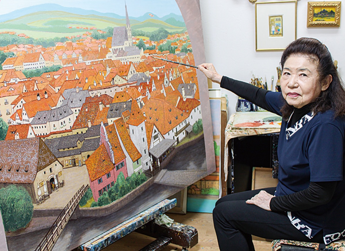 内閣総理大臣賞など数々の受賞歴のある中原区在住の画家・垣内宣子さんが、チェコ共和国マルチン・クルチャル大使から作品寄贈に対する感謝の意を贈られた。