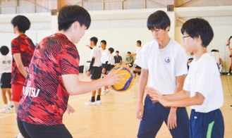 当日は準備体操をして体を動かした後、トスやレシーブの練習などを行い、生徒たちは選手からアドバイスをもらっていた。最後には生徒同士で試合を行い、得点が入ると生徒たちは笑顔で選手たちとハイタッチをしていた。