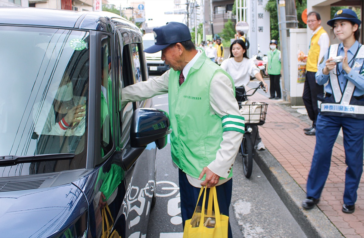 当日は「交通事故による死亡者をナシに」という思いを込めて、関係者ら約20人が参加。交通量の多い時間帯に的を絞り、赤信号で止まった車の運転者にはナシを、通行人には啓発物と夜間に光る反射材などを配布した。中原交通安全協会の鹿島義久会長は「交通ルールの遵守とマナーアップを多くの人に周知してもらうために考えた。初めて実施したが、ドライバーも笑顔で受け取っていただけてよかった」と話した。区内の50代女性は「ナシは大好きなのでうれしい。これからも気をつけて運転したい」と気を引き締めた。
