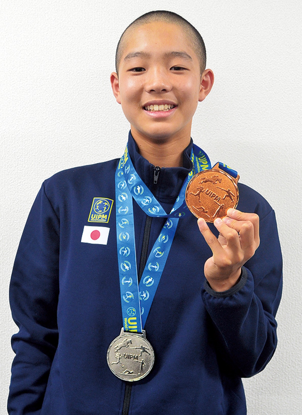 水泳とランニング、射撃を行ってタイムを競う「近代三種」。同競技の世界選手権が10月にエジプトで行われ、西中原中学校2年の志村佳祐さんがU-15の個人種目で銅メダルを獲得。団体戦でも銀メダルを獲得した。