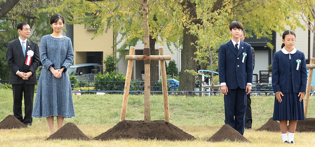 富士見公園では記念植樹が行われ、桜の品種の一つ「舞姫」の苗木を用意。佳子さまはスコップを手に富士見中学校(川崎区)2年生の生徒2人と一緒に土と水をかけられた。生徒は「佳子さまから水は何回かけますかなどと声をかけてもらい、緊張がほぐれた」と振り返った。