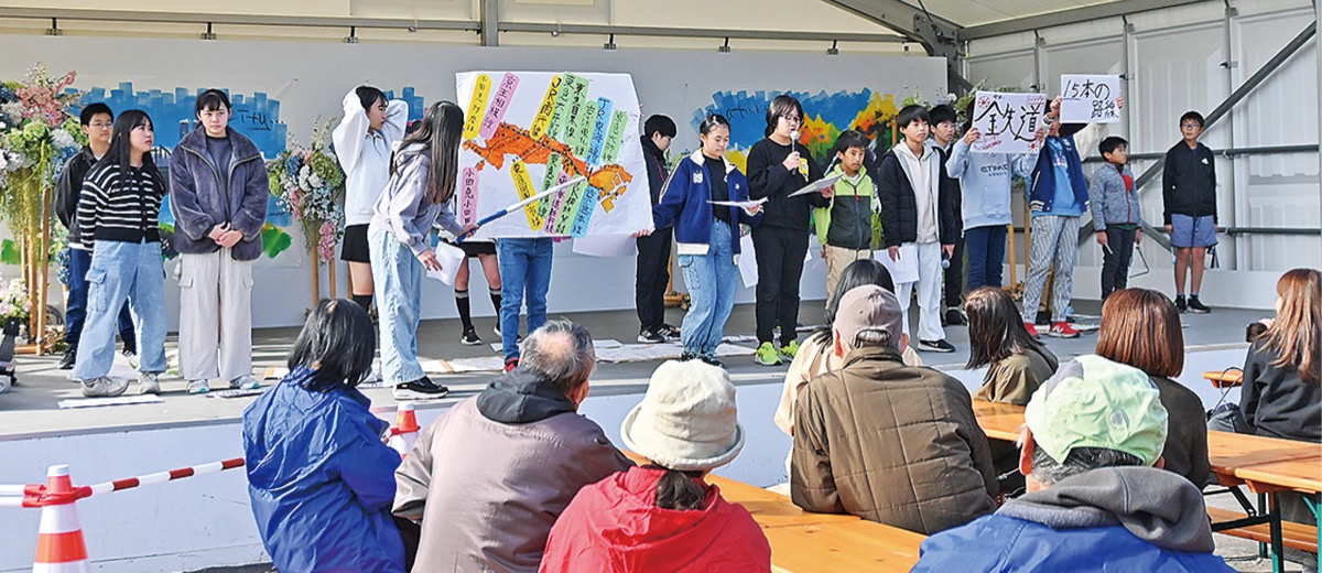 同日、同緑地の催し物広場では小杉小学校6年生が川崎市の魅力を紹介する発表会が行われた。
