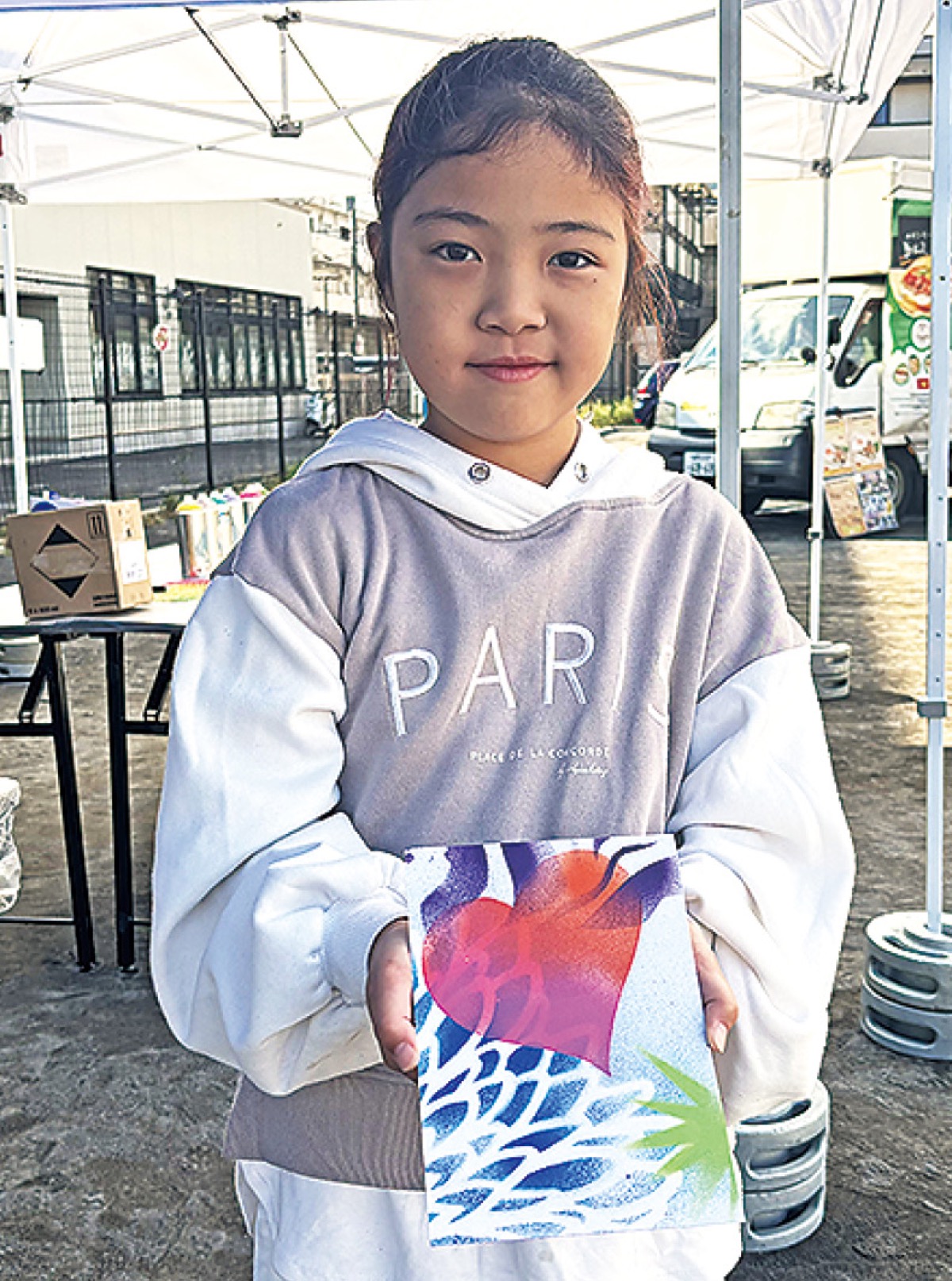 当日はこすぎ公園をメイン会場に、7つのブースを展開。事前予約制のまちあるきツアーは満員で、参加者は「散歩の達人」と共に、説明を受けながら商店街などを練り歩いた。他にもワークショップは親子連れでにぎわい、スプレーアート体験をした区内在住の女児(5)は「かわいいものができた。楽しかった」と笑顔で話した。キッチンカーもあり、飲食を楽しむ人の姿も見られた。