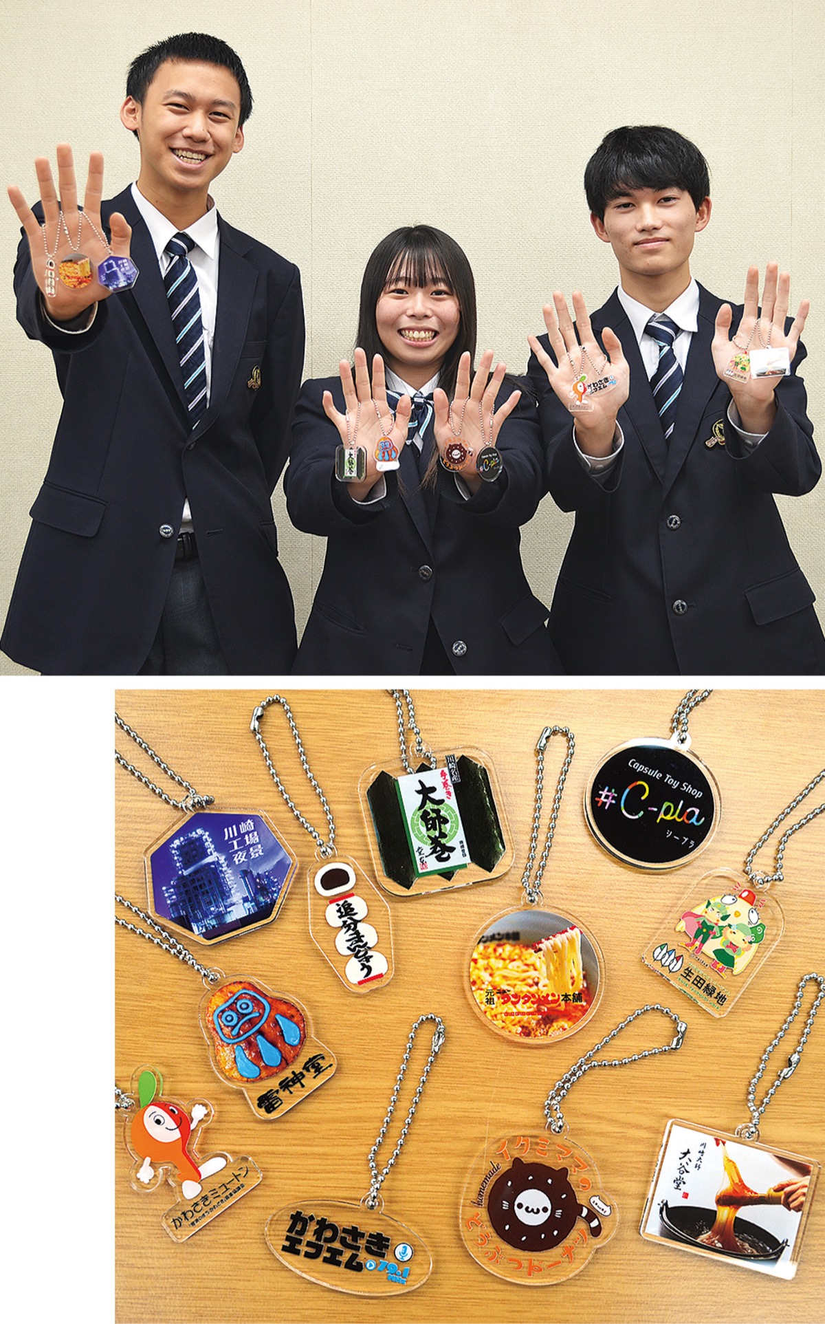 今回の企画に関わった同校生徒は選択科目「商品開発と流通」を履修する21人。「川崎をテーマにしたカプセルトイ製作」を生徒が提案したことで始まった。同科商業科主任の尾崎史将教諭(48)が渋谷区に事業所を構える(株)トーシンに相談すると、偶然にも同協会との共催事業として川崎のご当地ガチャに取り組んでいることがわかり、3者の合同事業として進めることになった。