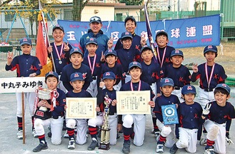 10月に開会し、連盟所属の5チームの総当たり戦で行われた同大会。中丸子みゆきの原直樹監督は「夏以降の子どもたちの成長には驚いた。みんなで勝ち取った勝利」と話し、主将の武田琥太郎さんは「1年間努力してきた成果を出すことができた。この結果は最高です」と喜んだ。