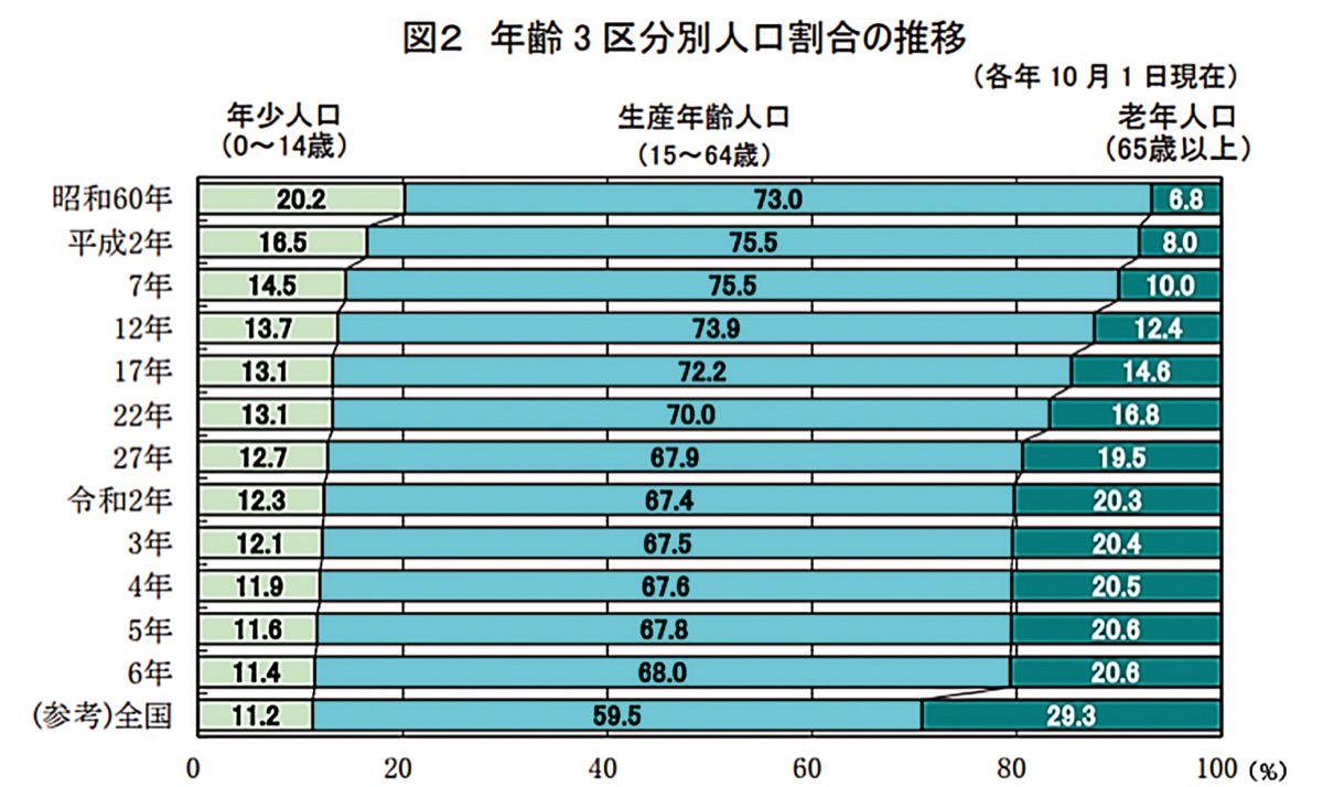川崎市の2024年10月1日時点の人口構成は、全国平均と比べると15歳〜64歳の生産年齢人口の比率が高く、65歳以上の老年人口は低いことが分かった。市が「年齢別人口」の数値を推計し、昨年12月24日に公表した。