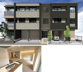 今回紹介するのは、屋根についたソーラーパネルで発電と売電ができるZEH(ゼッチ)(ネット・ゼロ・エネルギー・ハウス)マンションで重量鉄骨造の3階建て。2LDK×9戸、3LDK×1戸の間取り。