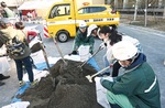 中原区総合防災訓練が2月9日、上丸子小学校で行われた。近隣町会や区民ら約600人が訪れ、有事の際の備えについて学び、体験した。