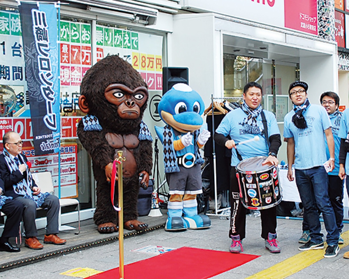 また、武蔵小杉駅では14年2月から、人気ロックバンドのザ・クロマニヨンズの『ナンバーワン野郎!』を使用。この曲の替え歌が、川崎フロンターレの応援歌になっており、サポーターからも親しまれている。使用が開始された日には、記念セレモニーも行われ、区役所や川崎F、JR、サポーターら関係者が出席し応援歌が披露された。