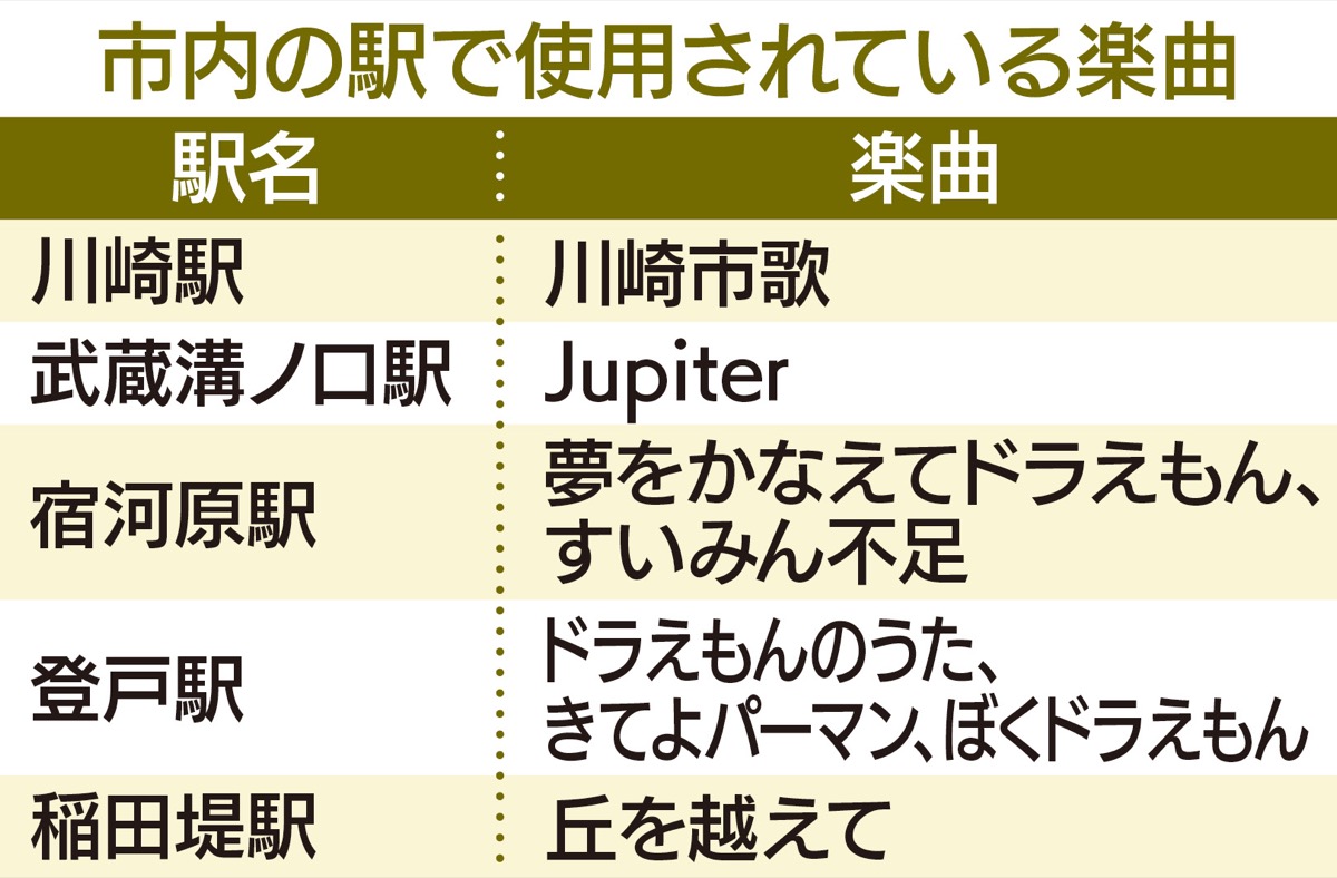 川崎市内の南武線では、この発車メロディーに地域ゆかりの曲を採用している駅が7つあり、それぞれ地元の魅力発信の一翼を担ってきた。