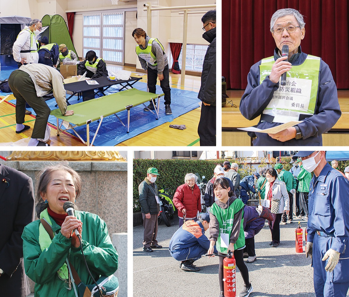 田口ひろ子会長は「能登地震のようにいつやってくるかわからない災害に向けて、何をするべきかを体験しておくことが大切になる」と訴えた。会場として同寺を提供した住職の岸顕崇氏は「実際には想定通りにいかないこともあるが、できないことを知ることも必要」と話した。消火器体験を行った小4・女児は「本物の火は簡単には消えないと思うので、もしものときは今日の体験を生かしたい」と答えた。