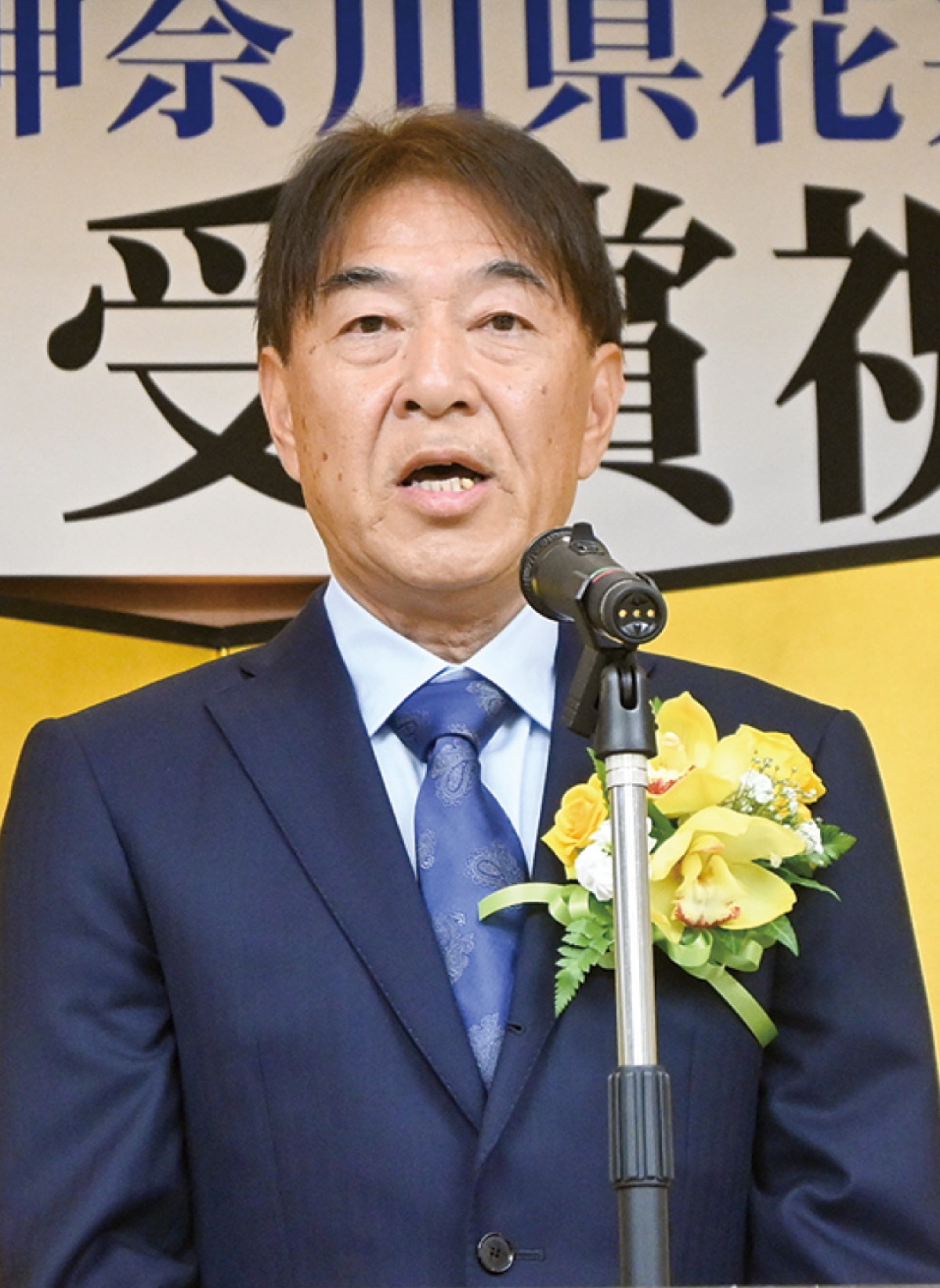 下小田中で花きを生産する内藤恭正さん(57)の農林水産大臣賞受賞祝賀会が2月20日、JAセレサ川崎中原支店で開催され、43人の出席者が内藤さんの快挙を祝った。