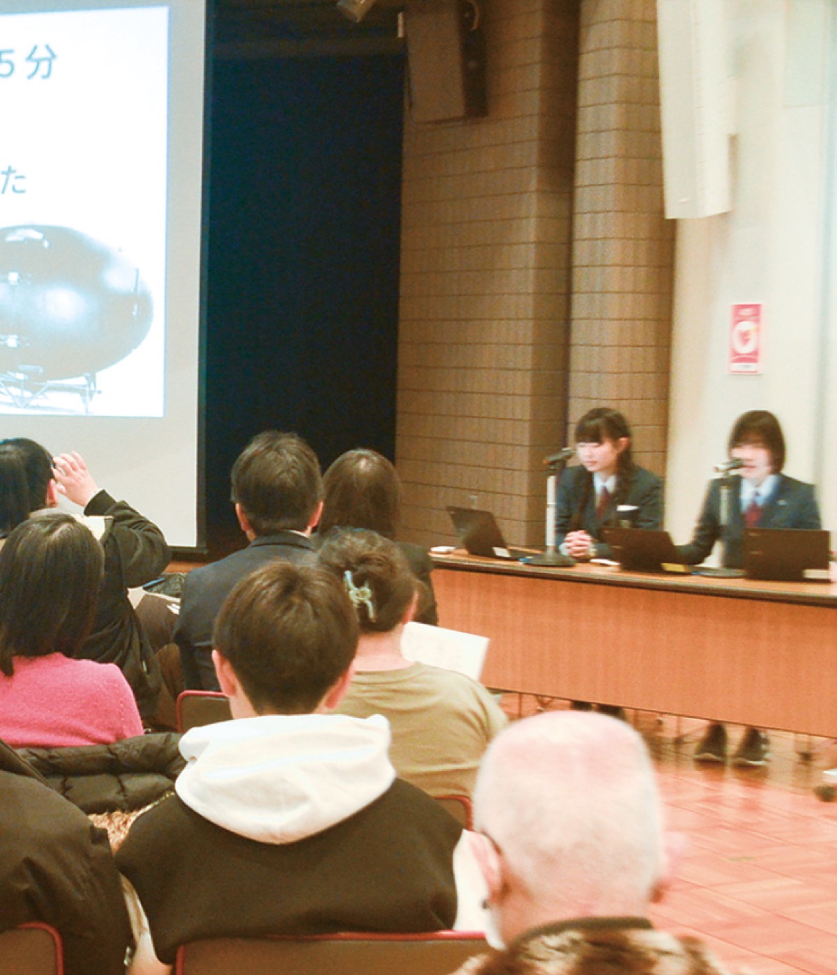 当日は平和学習に取り組んだ東橘中学校の生徒も登壇。広島を訪れ、現地で聞いた話などを発表した。御田光さん(15)は「国や考え方が違っても相手の視点に立ち理解することが大切だと感じた」と話し、松倉朱音さん(15)は「平和が当たり前ではなく、危機感をもち次世代に伝えていきたい」と思いを込めた。