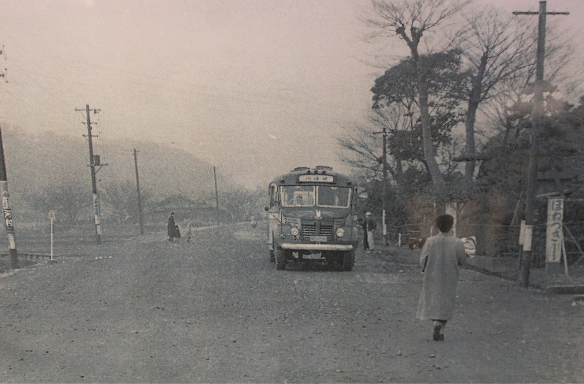 昭和30年代の古いモノクロ写真には、未舗装の尻手黒川道路と市バスの井田営業所が写る――。井田中ノ町の伊藤稔さん(80)が自宅の蔵を改装し、写真や古道具などをコレクションしている。