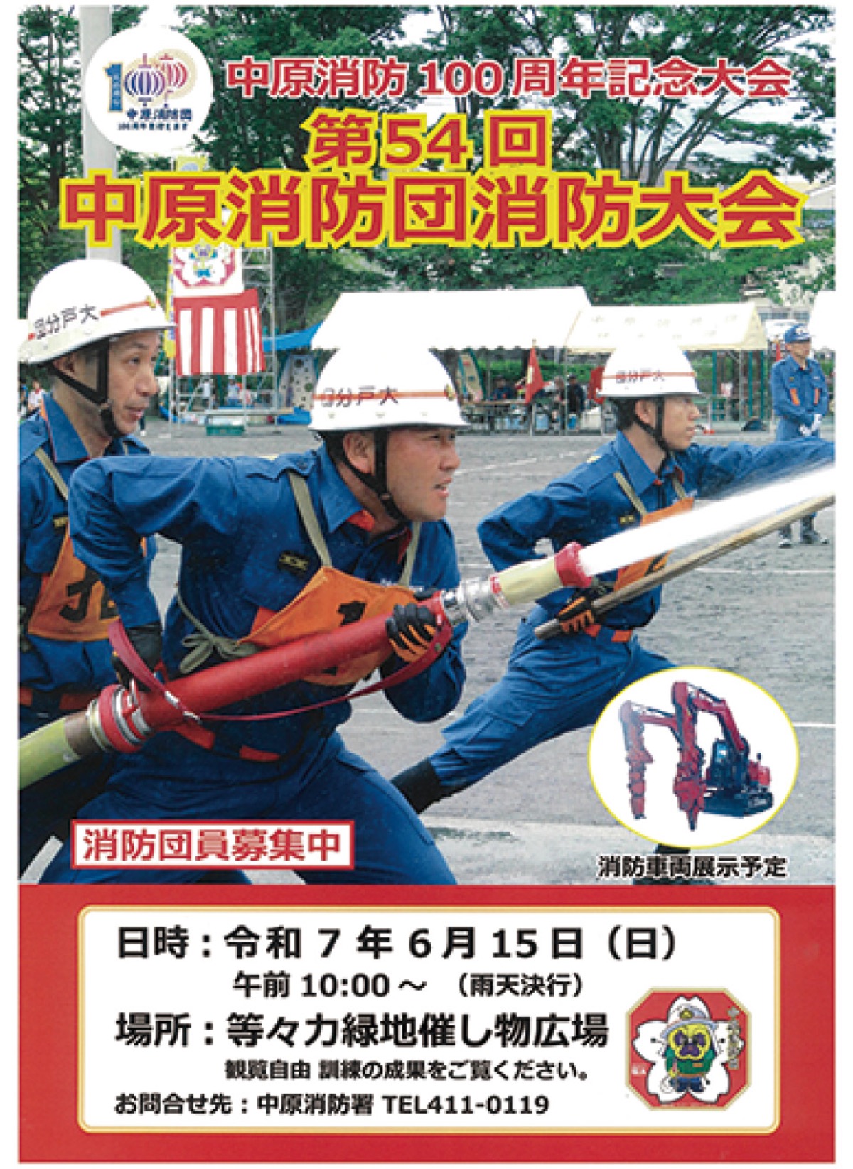 今年、発足から100周年を迎える中原消防団。その記念大会として、各分団が日頃の消防技術の訓練の成果を発表する。