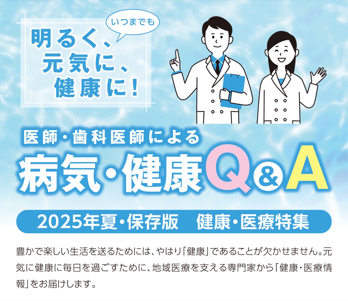 本紙では今回、日々健康に過ごすために「気になるけどなかなか聞けない」という心身の悩みや疑問を地域の医師に聞き、Q&Aで紹介。「健康長寿」を目指すためにもぜひご活用ください。