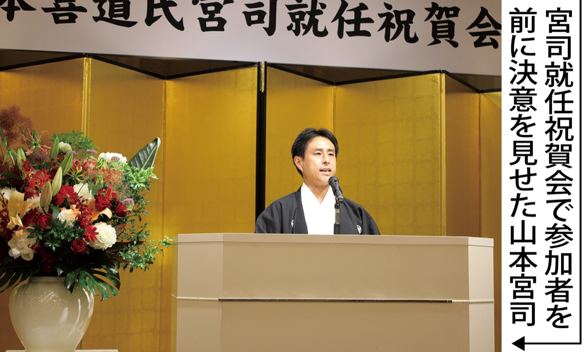 1200年の歴史をもつ日枝神社の第38代宮司に就任。大戸神社、小杉神社の宮司も拝命を受けた。6月の祝賀会には多くの人が出席し、新宮司の誕生を祝った。あいさつに立った山本宮司は出席者を前に「たくさんの皆さまから期待の声を掛けられ、自分が担う責任の重さを実感している。これから日々研さんを重ね、地域の発展のために懸命に努力していきたい」と決意を述べた。
