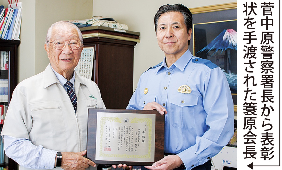 多年にわたり警察官友の会の役員として、会の適切な運営に務め、警察職員に対する叱咤激励、警察活動への市民の理解と協力を求める活動を積極的に推進してきたことに対し、国から表彰された簑原利憲さん。今回、表彰されたのは全国でわずか4人で、中原地区では初の受賞となる。