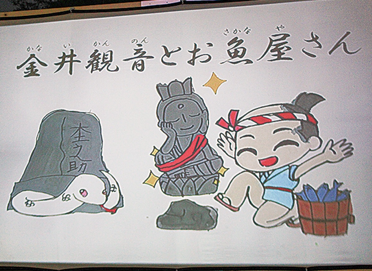 同センターに通う児童ら3〜5人が絵を担当し、1年がかりで制作。『雨乞いの竜』は昨年、その後を継いだ児童らが今年の3月に『金井観音とお魚屋さん』を完成させ、世界に一つの紙芝居が出来上がった。現在制作中の3つ目の作品は、年内の完成を目指しているという。同自治会会長で歴史ガイド委員長を務める田村二三夫さん(77)は「自分たちが暮らす宮内に残されている歴史的財産を守り、伝えていくことで地域の活性化につなげていきたい」と思いを込める。
