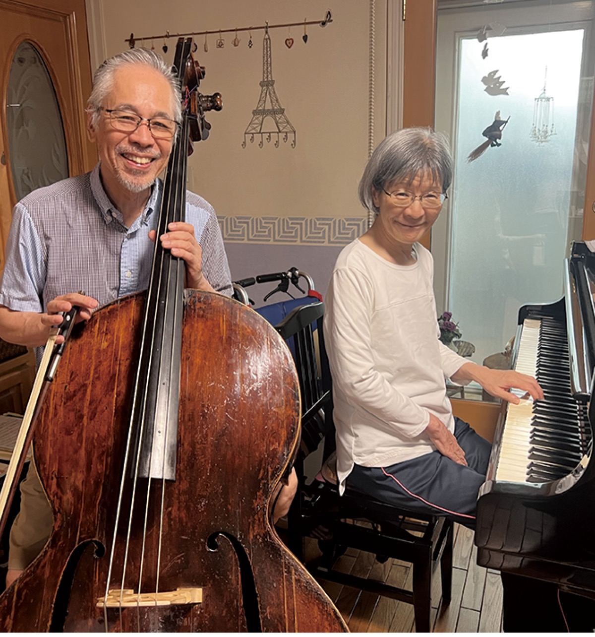 障害を抱えながら、演奏活動を続けている夫妻がいる。コントラバス奏者の夫・大西雄二さんと、ピアニストの妻・大西ますみさんだ。地元のエポックなかはら(JR武蔵中原駅直結)で10月24日(金)に開催されるチャリティコンサート(主催・日本オストミー協会川崎市支部/坂本純支部長)への出演が決まり、自宅のスタジオで練習を重ねている。