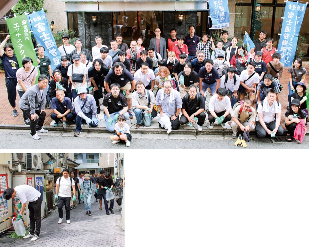 武蔵小杉駅前周辺に捨てられたごみを拾って、街をきれいにしようと、全富士通労働組合連合会(AFK)のメンバーが中心になって9月13日、駅周辺の広場や歩道を歩きながらボランティアの清掃活動を行った。