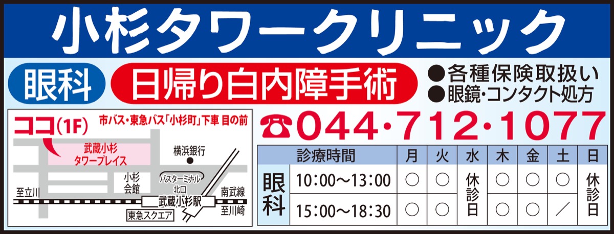武蔵小杉駅北口目の前 眼科『小杉タワークリニック』