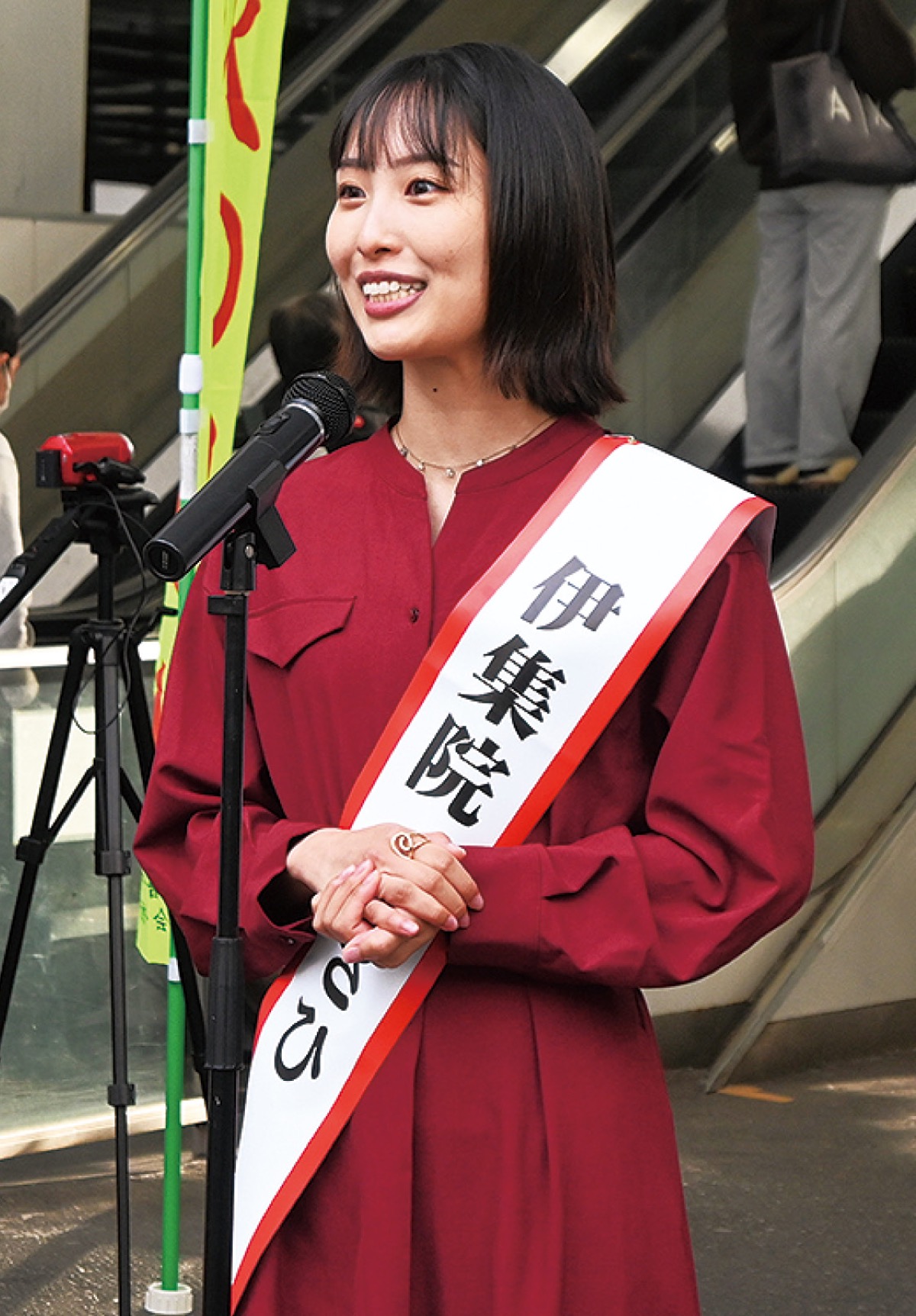 パレード後には、元住吉駅西口広場でセレモニーを実施。小川署長は「寒くなると空気が乾燥し、火災が増える。掃除をする際は、電気プラグを抜いてほこりを取るにようすると火災が減る。ぜひご協力を」と訴えた。伊集院さんは「今回火災予防運動のモデルに起用していただき、火災に関するニュースなどを気に掛けるようになった。火災は怖いものだけど、火災が起きた際にどう行動できるか。しっかり知識を身に付けて」と呼び掛けた。消防音楽隊によるミニコンサートでは、『好きです かわさき 愛の街』などを演奏し、会場を盛り上げた。