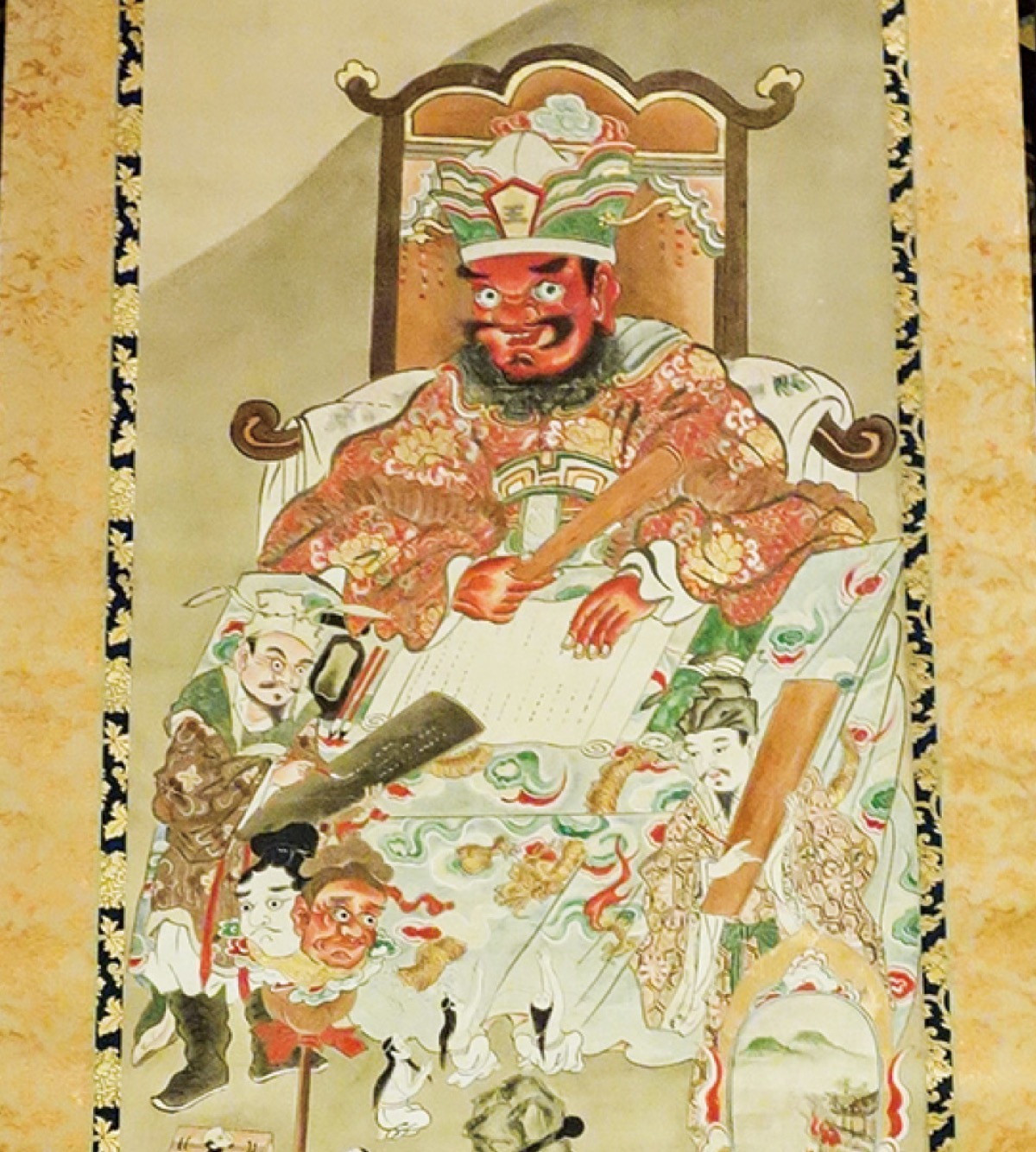 江戸時代中期に描かれたという掛け軸11幅の地獄絵を本堂に展示。冥土への旅路や来世の行きつく先を決める様子、鏡に映ったうそを見抜く閻魔大王の姿などがある。