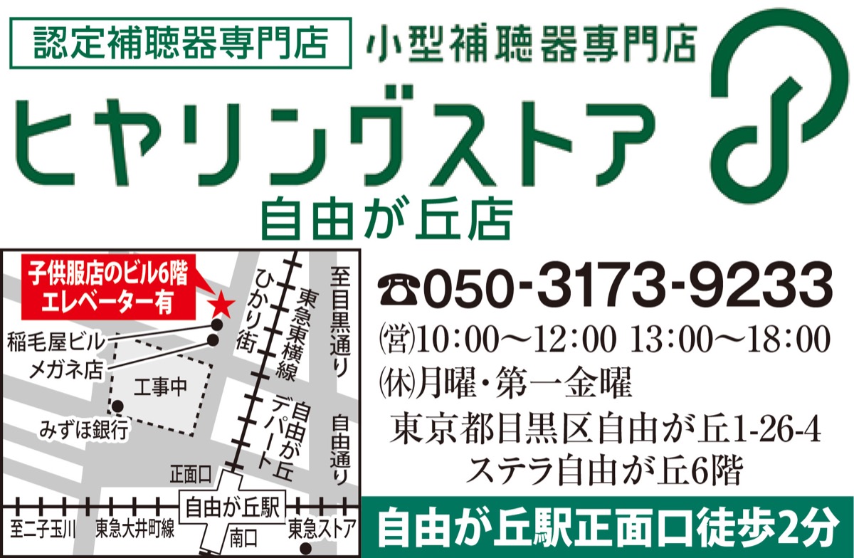 認定補聴器専門店による「補聴器無料相談・体験会」が1月11日(日)・13日(火)・16日(金)・17日(土)・18日(日)・21日(水)の6日間、「ヒヤリングストア自由が丘店」(自由が丘駅2分)で開催される。