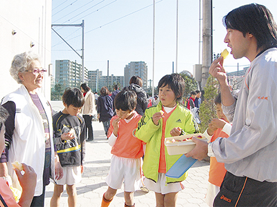 今も、試合前にはお手製のレモンのハチミツ漬けや、リンゴを手土産に応援に駆けつける。子どもたちのために奔走する母の姿を見て、いつしか息子たちも同じ道を歩み始めた。長男の加藤渉さんは川崎市サッカー協会の副理事長として活動する傍ら、南百合丘サッカークラブのコーチとして日々汗を流している。渉さんは話す。「実力を伸ばすより、子どもたち全員がサッカーを楽しめるように指導している。それが母の教えでもあった」。早苗さんは「これからも子どもたちのために活動していくのが願いです」と話している。