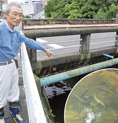 区内を流れる麻生川で今月6日、数匹の鮎が遡上しているのを上麻生在住鈴木昭男さんが発見した。