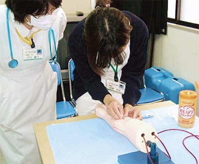 この研修は、同院が資格を持ちながら、現場を離れている人や子育て中の人などに復職のきっかけを作ってもらおうと、実施している。ベッドメーキングや注射などの、看護に関する基礎知識、技術を再確認する。