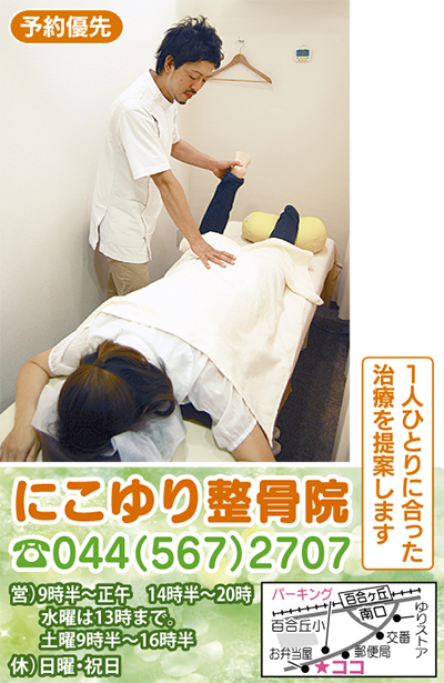百合ヶ丘で開院し、今年で4年を迎えた「にこゆり整骨院」では、独自の手技や鍼灸、電気療法などで治療を行っている。