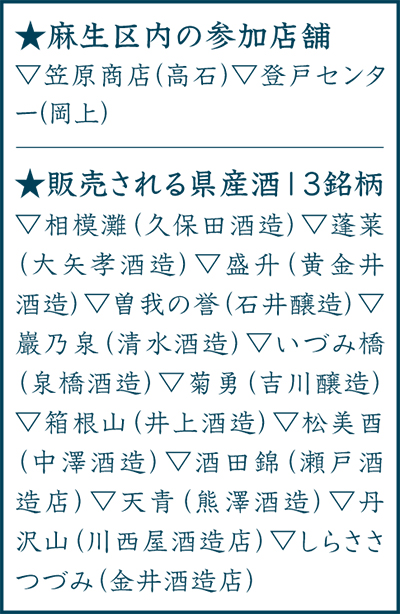 店舗によって取り扱う銘柄が異なる。問い合わせは川崎酒販協同組合事務局(【電話】044・222・5080)。