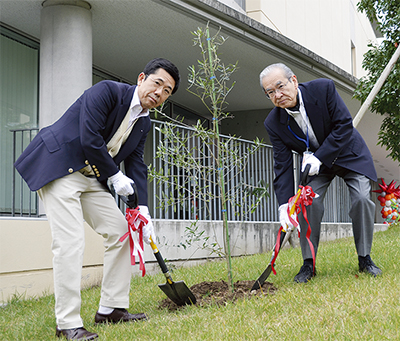 下八川理事長は「当大学はイタリア研修もあり、オリーブは大学のイメージにも合う。毎年植樹をして頂き、感謝申し上げます」と話した。